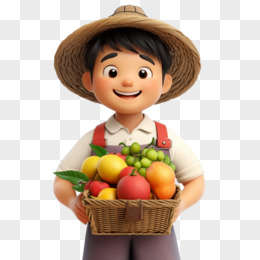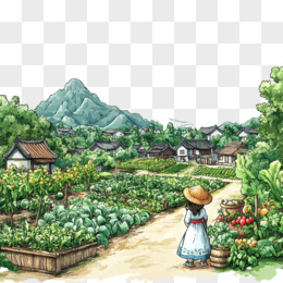 卡通风农业农民开着拖拉机从农田里经过免抠元素