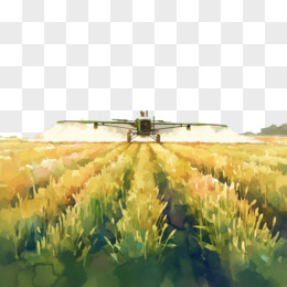 卡通风无人在农田里撒药免抠元素