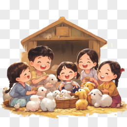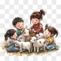 孩子们在农场玩耍的元素