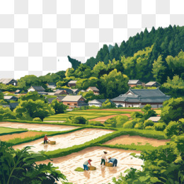 卡通农田和房屋免抠元素