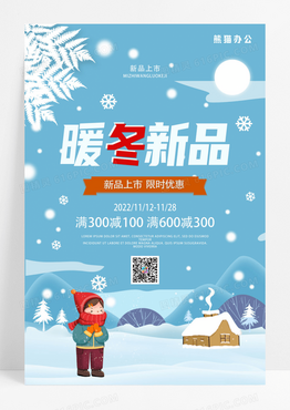 暖冬钜惠卡通蓝色渐变艺术字设计