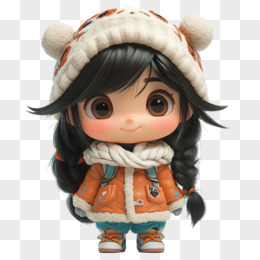 3D穿着暖和衣服的女孩免抠元素