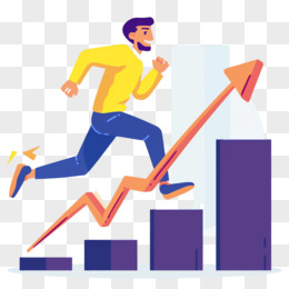 手绘扁平插画人物追寻业绩箭头素材