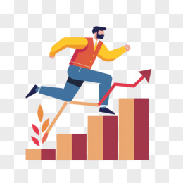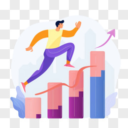 手绘插画人物柱状图追寻业绩素材