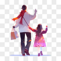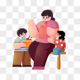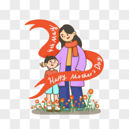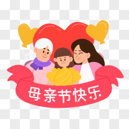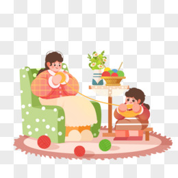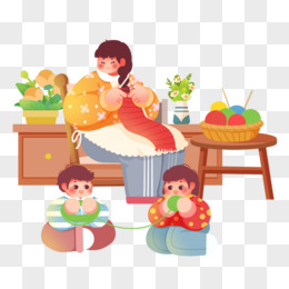 卡通手绘妈妈和孩子玩布偶玩具元素