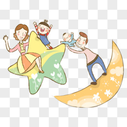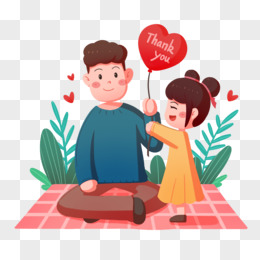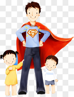 手绘卡通爸爸带娃和女儿看书插画免抠元素