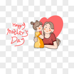 卡通手绘女儿和妈妈互相招手拥抱免抠元素