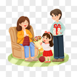 手绘插画女儿送礼物给妈妈插画免抠元素