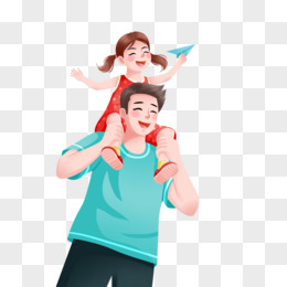手绘插画风女儿坐在爸爸肩上玩耍元素