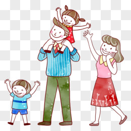 手绘卡通女儿捂爸爸眼睛免抠素材