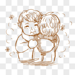 手绘卡通女儿拥抱爸爸插画免抠元素