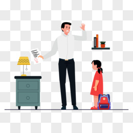 卡通手绘爸爸愁眉苦脸辅导女儿免抠素材