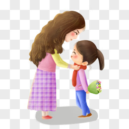 卡通手绘免抠母亲和女儿相互拥抱素材