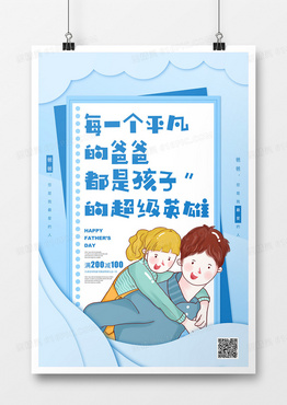 父亲节父女女儿给父亲送礼物卡通手绘元素
