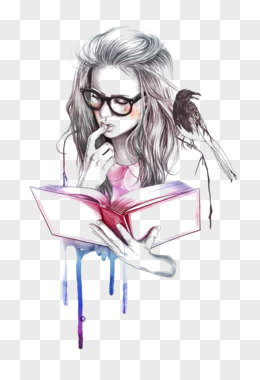 手绘读书女孩