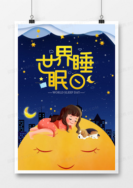卡通手绘女孩和小狗在月亮上睡着了免抠元素