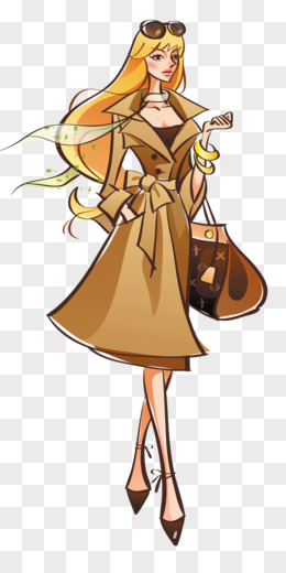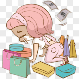 手绘创意插画风双人抱着金币的女孩免抠元素