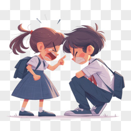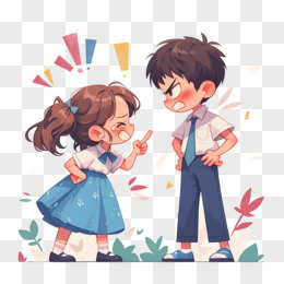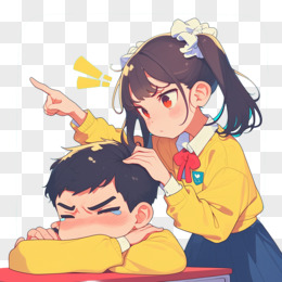 卡通手绘躺在地上的男孩和女孩免抠u安苏