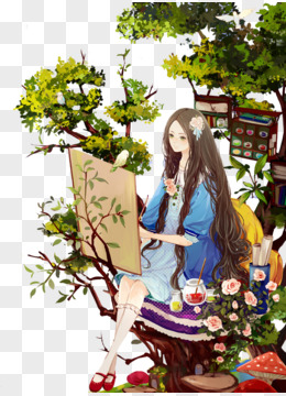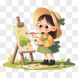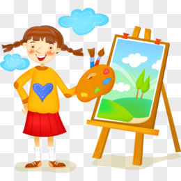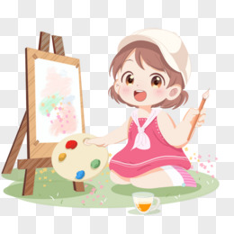 卡通画画的女孩免抠元素