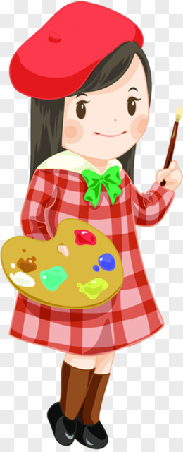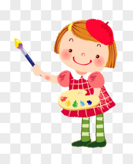 手绘可爱小女孩拿着颜料板画画元素