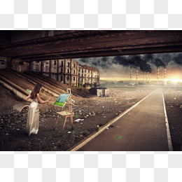 高速公路下画画的女孩