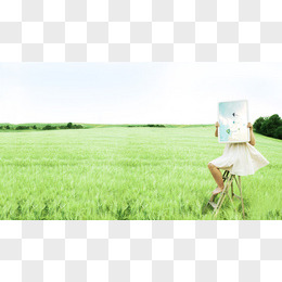 草地画画女孩海报背景