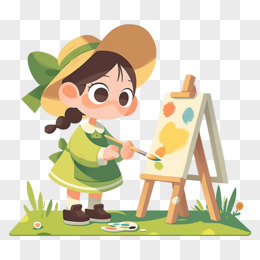 手绘卡通女孩画油画免抠素材