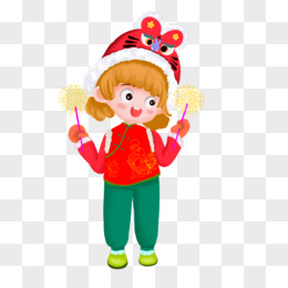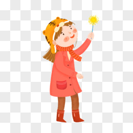 卡通手绘小女孩玩烟花免抠元素