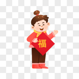 卡通手绘免抠女孩手拿福字免抠素材