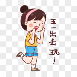 卡通女孩五一开心出去玩表情包元素