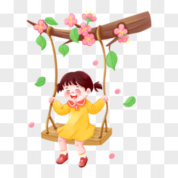 手绘儿童荡秋千元素插画