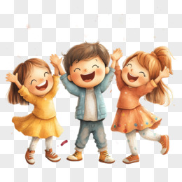 卡通风格开心过派对聚会的男孩女孩免抠元素
