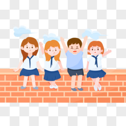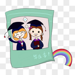 卡通同学女孩女生开心欢呼毕业照青春学士服 学位帽