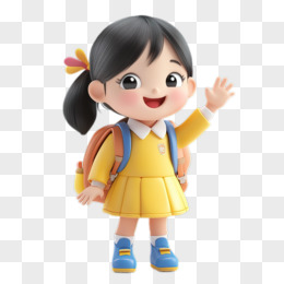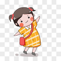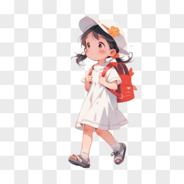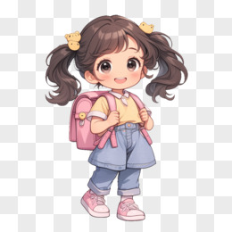 卡通风开学季扎双马尾小女孩背书包免抠元素