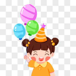 卡通手绘女孩手拿气球开心笑着免抠元素