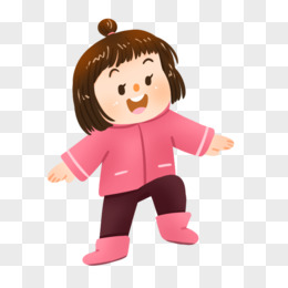 女孩在冬天雪地里堆雪人手绘卡通场景元素