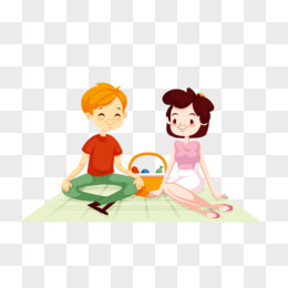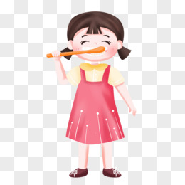 卡通手绘女孩坐在码头上开心吃西瓜免抠元素