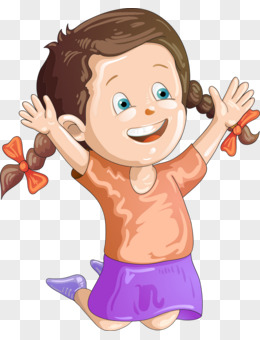 手绘卡通跳跃的小女孩免抠元素