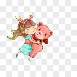 卡通手绘开心带虎头帽的小女孩素材