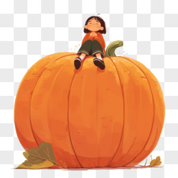 卡通风秋天小女孩坐在大南瓜上免抠元素