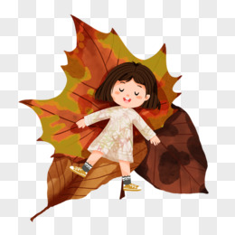 手绘秋天女孩躺落叶元素