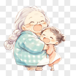 卡通风重阳节一个老奶奶和一个小女孩拥抱免抠元素