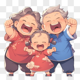 卡通风重阳节一对老年夫妇和小女孩免抠元素