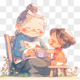 卡通风重阳节一个老奶奶和一个小女孩免抠元素