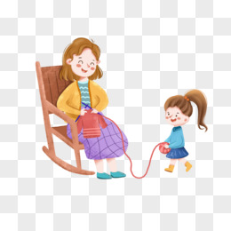 手绘卡通妈妈和女孩贴窗花剪纸元素