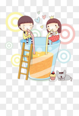 手绘卡通夏天小男孩坐在饮料杯上元素