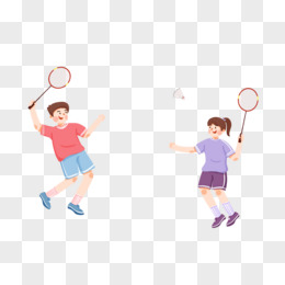 手绘免抠卡通男孩女孩一起打羽毛球素材