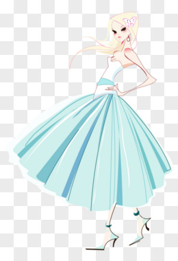 手绘可爱卡通小女孩拿着裙子免抠素材