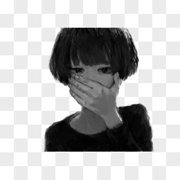 手绘卡通捂嘴哭泣的女孩免抠元素