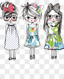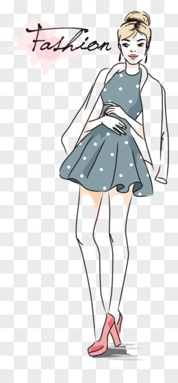 手绘 线描 线条 时尚服饰 走秀美女孩人物插画